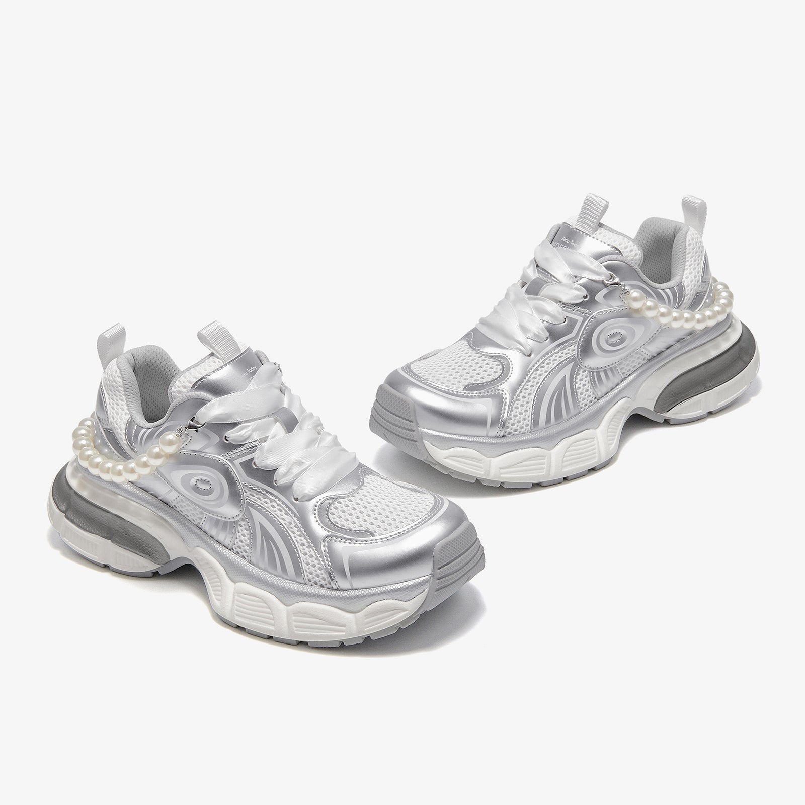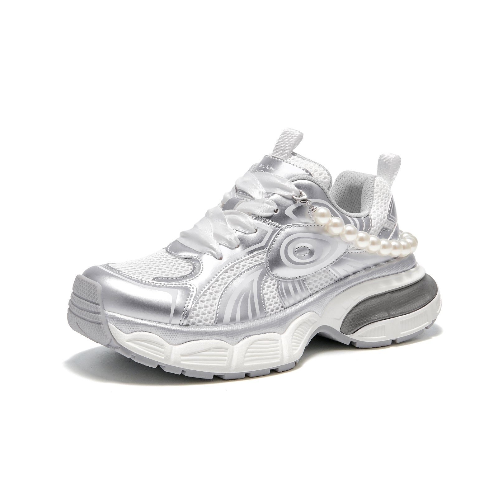 BeauToday Fashion Casual Chunky Sneakers with Pearl Chain Design for Women