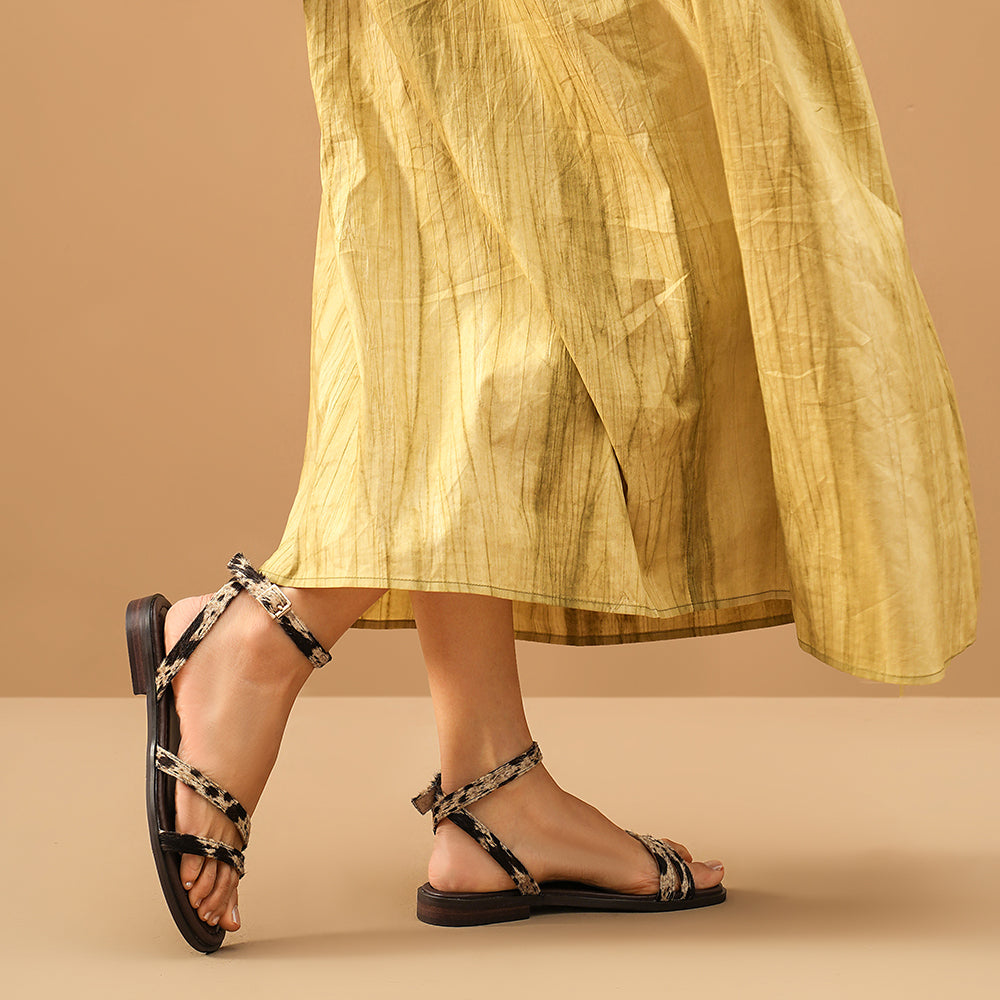 BeauToday Women's Animal Print Lace Up Flat Sandals